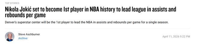 如今,约基奇的史诗级数据表现,加上球队目前11连胜的势头(自3月12日以来14胜2负),无疑会增加他争夺MVP的筹码,就像他帮助掘金在西部排位中一路攀升那样。但效果究竟有多大仍有待观察:上赛季他以中锋身份打出场均三双,最终在三位MVP得主中也只拿到选票第二。现在,雷霆的亚历山大依然是MVP头号热门,而且在媒体和球员摸底调查中,亚历山大都获得了最多的支持。