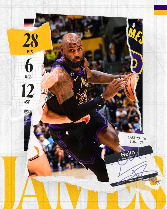 湖人101-73大胜太阳豪取二连胜,这场比赛41岁的勒布朗32分钟里16中10,狂揽28分12助攻6篮板4抢断,再一次展现了君临天下,各种的快攻暴扣看得主场球迷惊呼连连,41岁的他油箱里还有许多油。