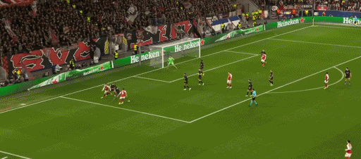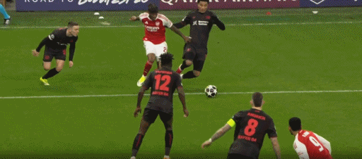 第45分钟,萨卡带球长驱直入,最后被抢断