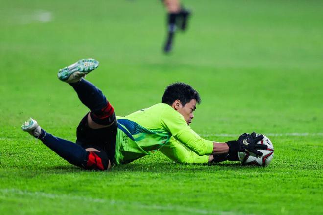 然而,这位守门员并未选择离场,在接受现场医疗团队冰敷处理后,强忍伤痛重新回到赛场,继续完成后续比赛。谈及带伤坚守的原因,区志东笑着说道:“不想第一次踏上这个赛场就被抬着下场,球队需要我的时候,必须扛住。”简单的话语,尽显责任与担当。