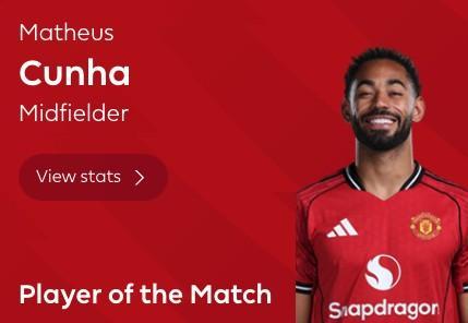 最终经过英超官网球迷投票,本场比赛出场81分钟的马特乌斯-库尼亚以49%的得票率当选全场最佳球员。