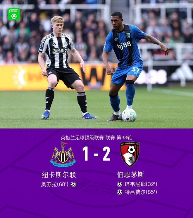 纽卡斯尔联主场1-2不敌伯恩茅斯,成为本轮最令人意外的结果。埃迪-豪执教时期,纽卡单赛季英超主场输球数刷新至7场,利物浦、阿森纳、阿斯顿维拉等强敌都曾在圣詹姆斯公园带走胜利。