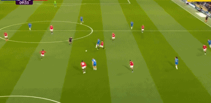 第43分钟,B费右路强行突破下底传中,谢什科前点掩护,库尼亚后点包抄迎球推射得手,曼联打破僵局,1-0!