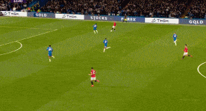 第43分钟,B费右路得球下底,随后倒三角传球,库尼跟进推射破门,曼联1-0切尔西。