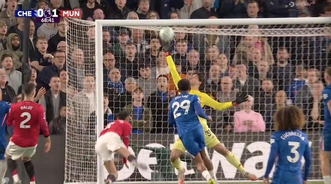 切尔西21次射门3次射正3次中框,曼联4次射门1次射正